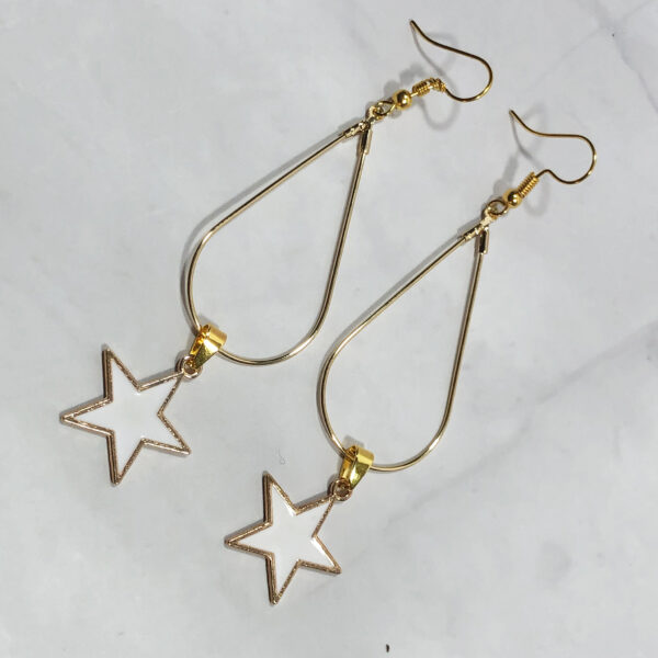 This pretty pair of teardrop earrings will have you seeing stars. Designed with medium-sized hoops and dangling star charms, these eye-catching beauties are out of this world.